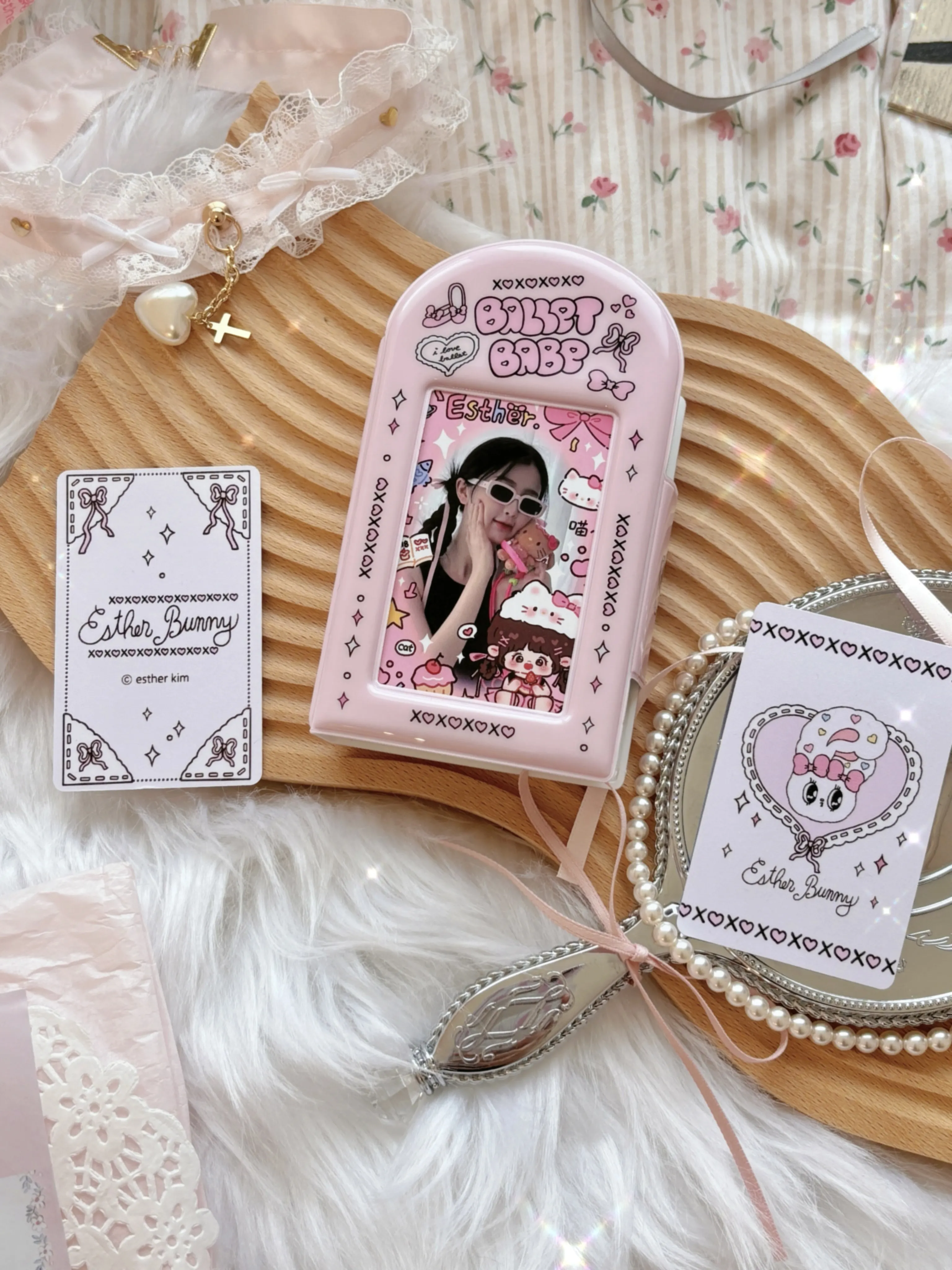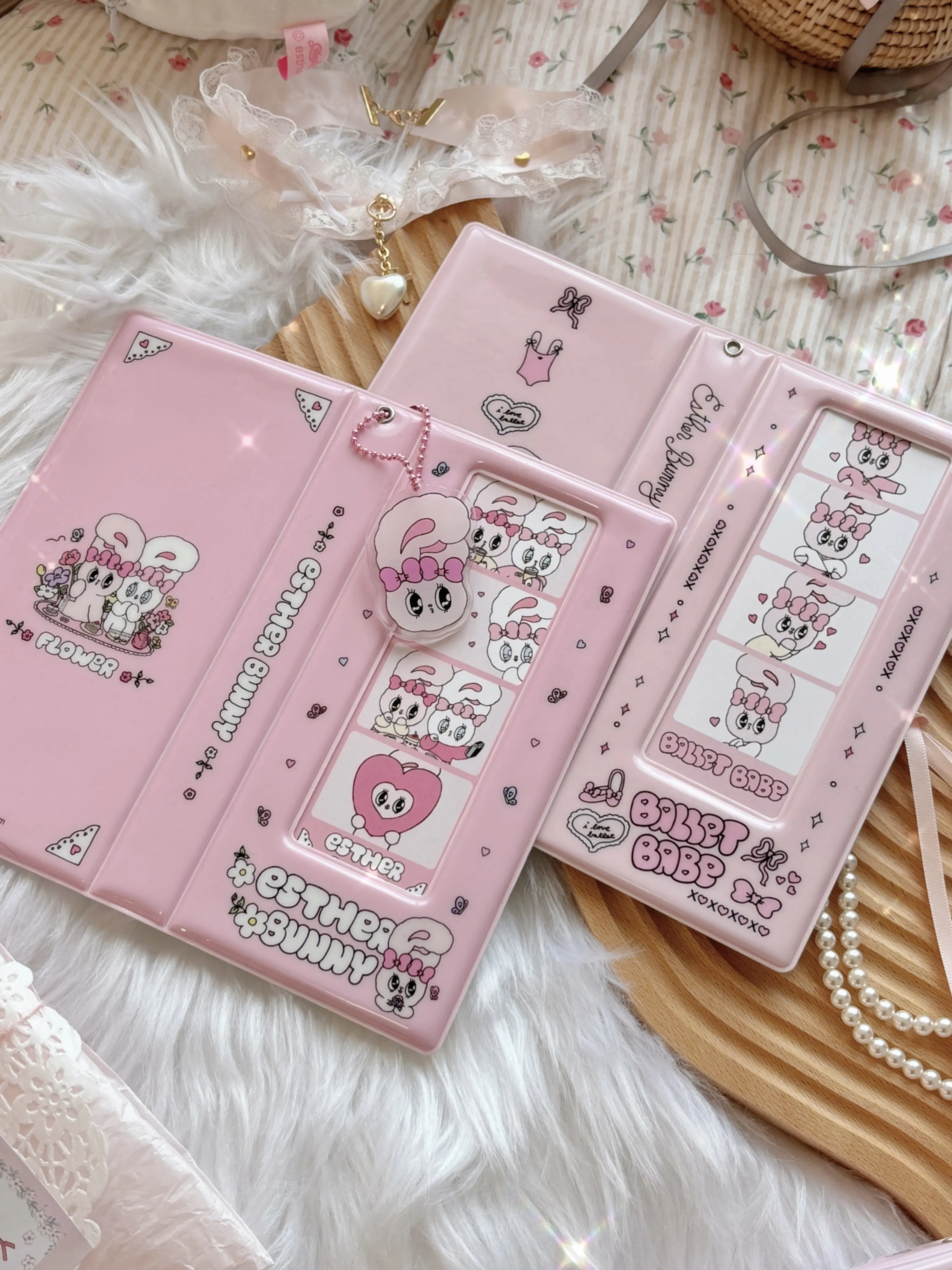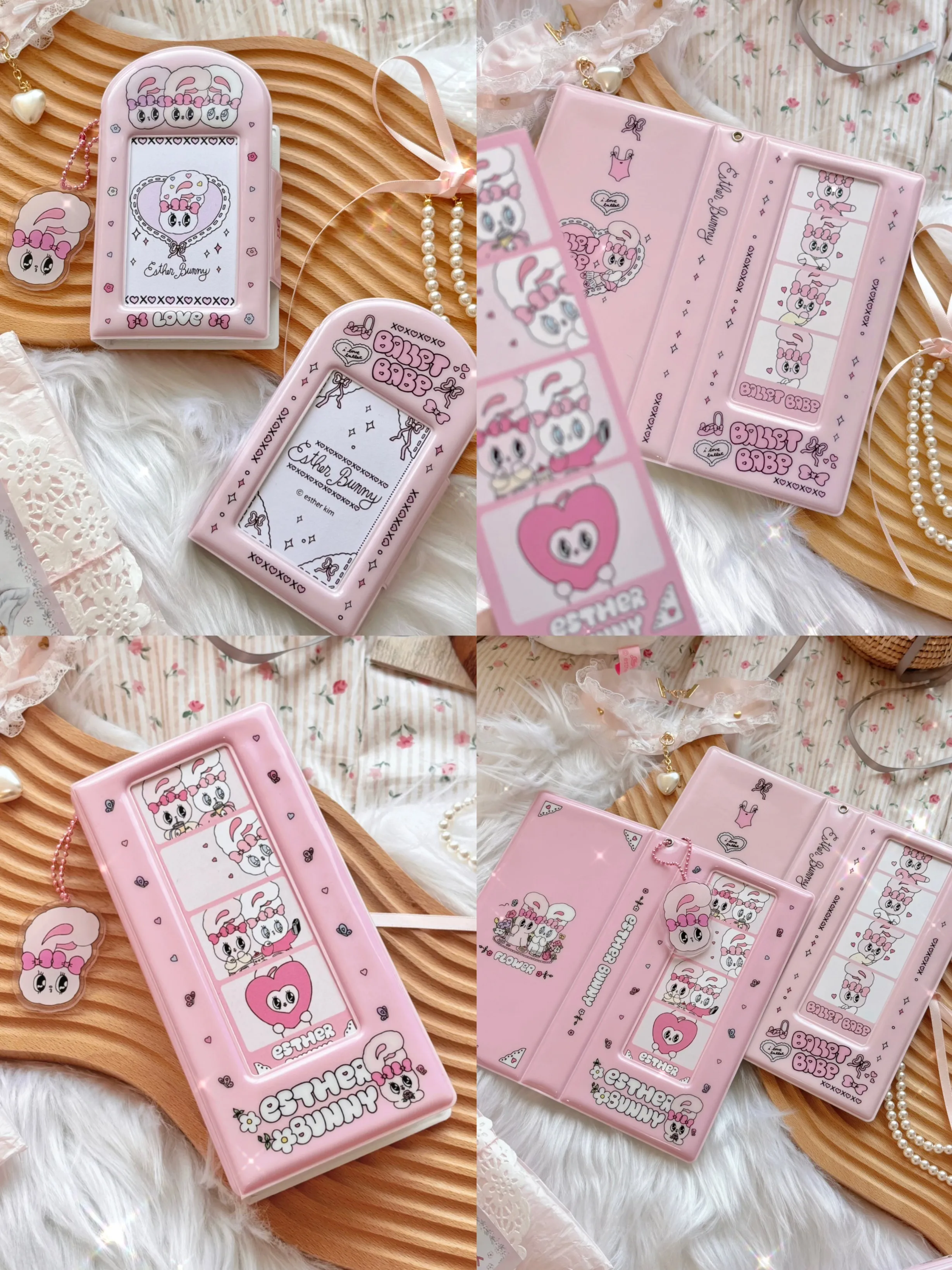 Cute Pink Photocard Holder Card Collect Book Life 4 Grid Bookmarks Idol Photo Album Kpop Binder