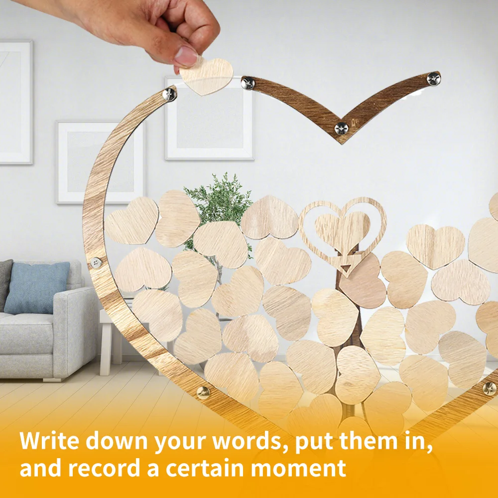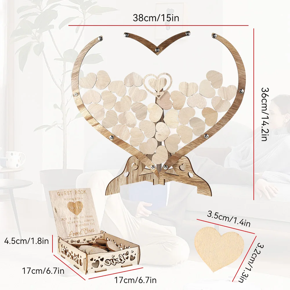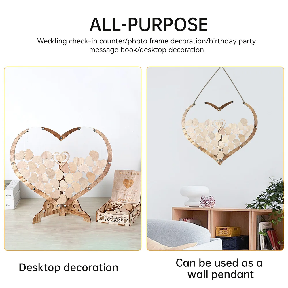 [Wood Material] Wedding guest book is made of wood material and transparent board, which can clearly display wooden hearts inside. The wooden hearts with flat surface and smooth edge, which are very suitable for guests to sign.